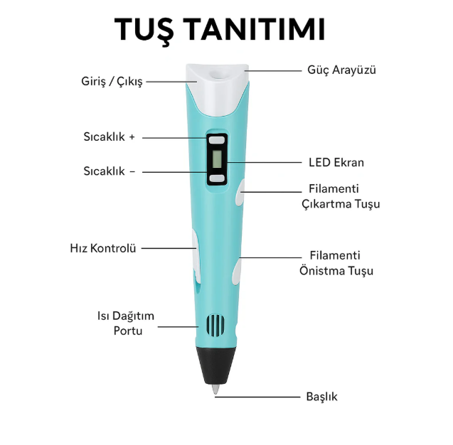 3D kalem, çizgilerinizi gerçek modellere dönüştürerek yaratıcılığınızı özgürce ortaya çıkarmanızı sağlar . Kolay, güvenli ve her yaşa uygun tasarımıyla projeler, figürler ve tamirler artık çok daha basit.